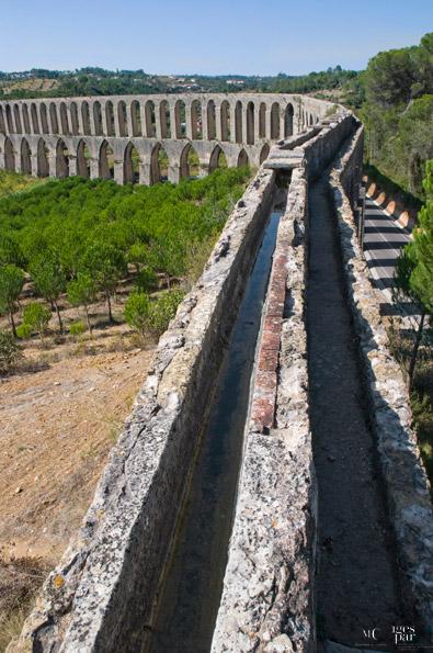 Surgiu assim na arquitectura e na paisagem conventual uma grandiosa obra de engenharia hidráulica que percorre uma extensão de cerca de 6 quilómetros, dispondo de um total de 180 arcos para as passagens aéreas da conduta. Particularmente audacioso é o trecho sobre o vale dos Pegões, constituído por 58 arcos de volta inteira, na zona mais funda do vale assentam sobre 16 arcos quebrados, por sua vez erguidos sobre imponentes maciços de alvenaria: os pegões.